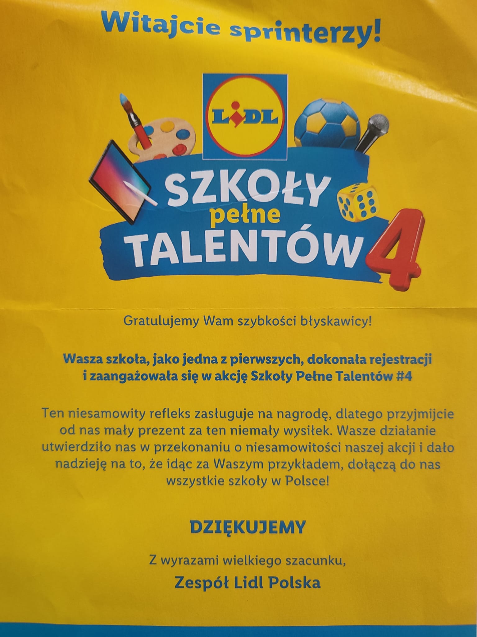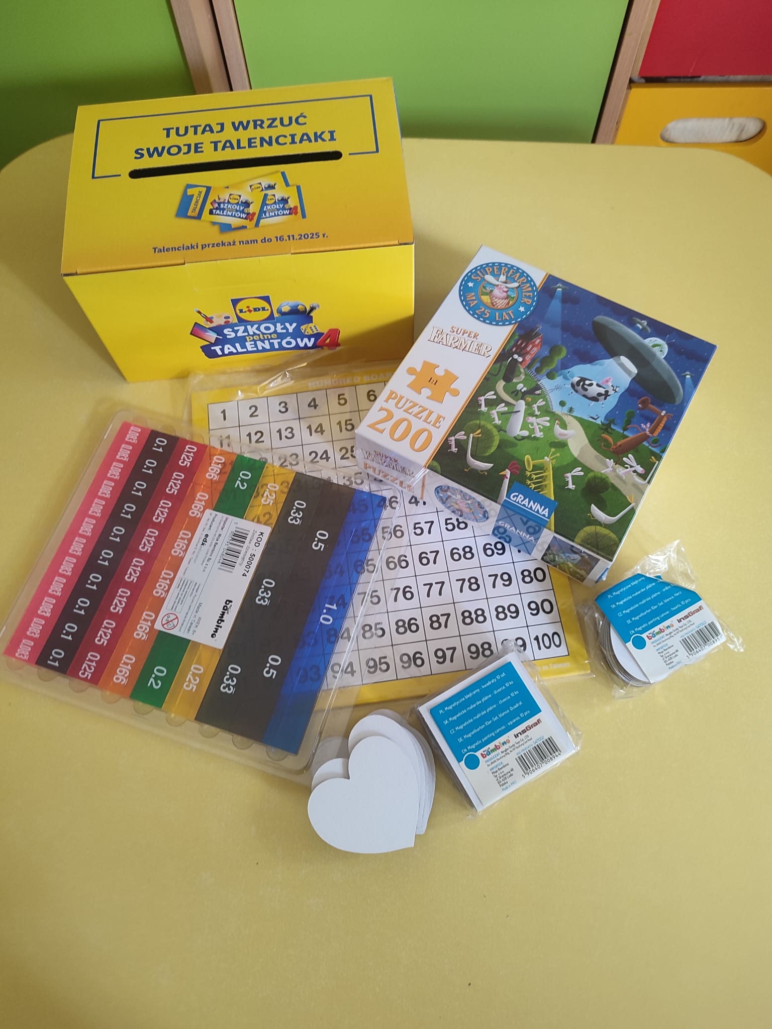 Z ogromną radością dziękujemy całej społeczności szkolnej za udział w kolejnej edycji akcji TALENCIAKI. Dzięki wspólnej aktywności uczniów, rodziców i pracowników szkoły udało nam się zgromadzić 1071 talenciaków, które zostały wymienione na atrakcyjny zestaw muzyczny oraz pachołki treningowe, które wzbogaciły bazę edukacyjno – terapeutyczną naszej placówki.