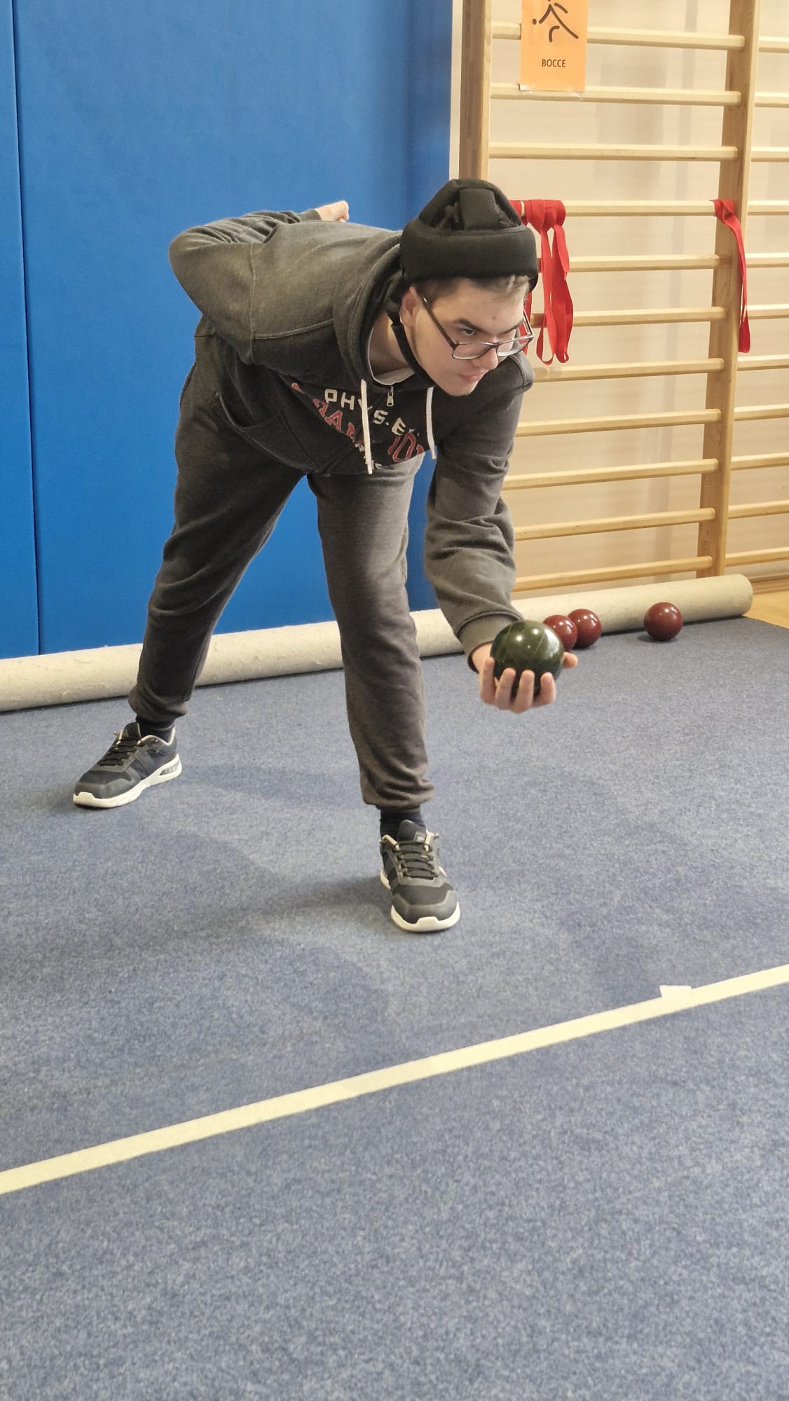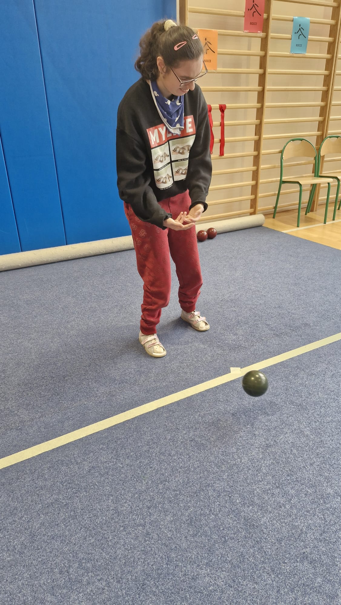 W dniach od 19 do 23 stycznia w sali gimnastycznej naszej szkoły miało miejsce sportowe wydarzenie – PROZDROWOTNY TYDZIEŃ Z BOCCE. Głównym założeniem tej dyscypliny jest dążenie zawodników przeciwnych drużyn do potoczenia kuli (zielonej lub czerwonej) tak, aby znalazła się jak najbliżej tzw. palliny – białej kulki, którą wprowadza się do gry na początku meczu. Przez pięć dni doskonaliliśmy umiejętności w zakresie gry, aby podczas wykonywania rzutów wg określonych zasad, osiągnąć jak najlepsze wyniki. Uczniowie każdej klasy mieli do dyspozycji osiem kul, natomiast wychowawca i wybrany przyjaciel klasy po cztery. Wszyscy z wielkim zaangażowaniem wykonywali swoje rzuty i kibicowali sobie nawzajem. Zgodnie z regulaminem mierzony był najlepszy wynik, czyli najkrótsza odległość od palliny. Dodatkowy bonus można było uzyskać za styczną z palliną lub trafienie w nią kulą. Suma trzech najlepszych rzutów – uczniów, wychowawcy i przyjaciela klasy – to ostateczny wynik oraz zdobyte punkty w Turnieju o Puchar Joteyko! Poza konkursem rozegraliśmy wiele meczów, podczas których wszyscy świetnie się bawili!