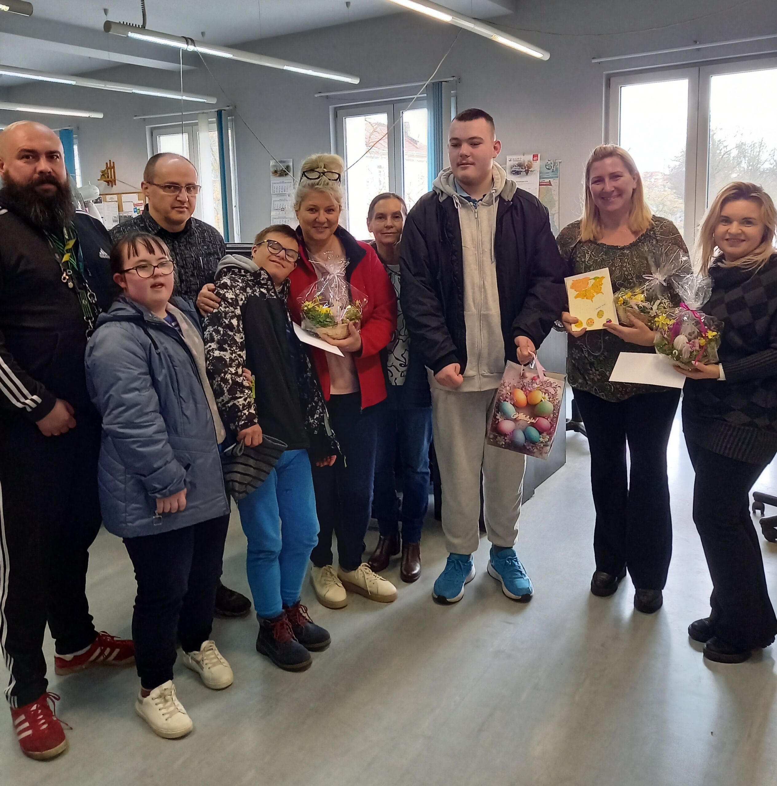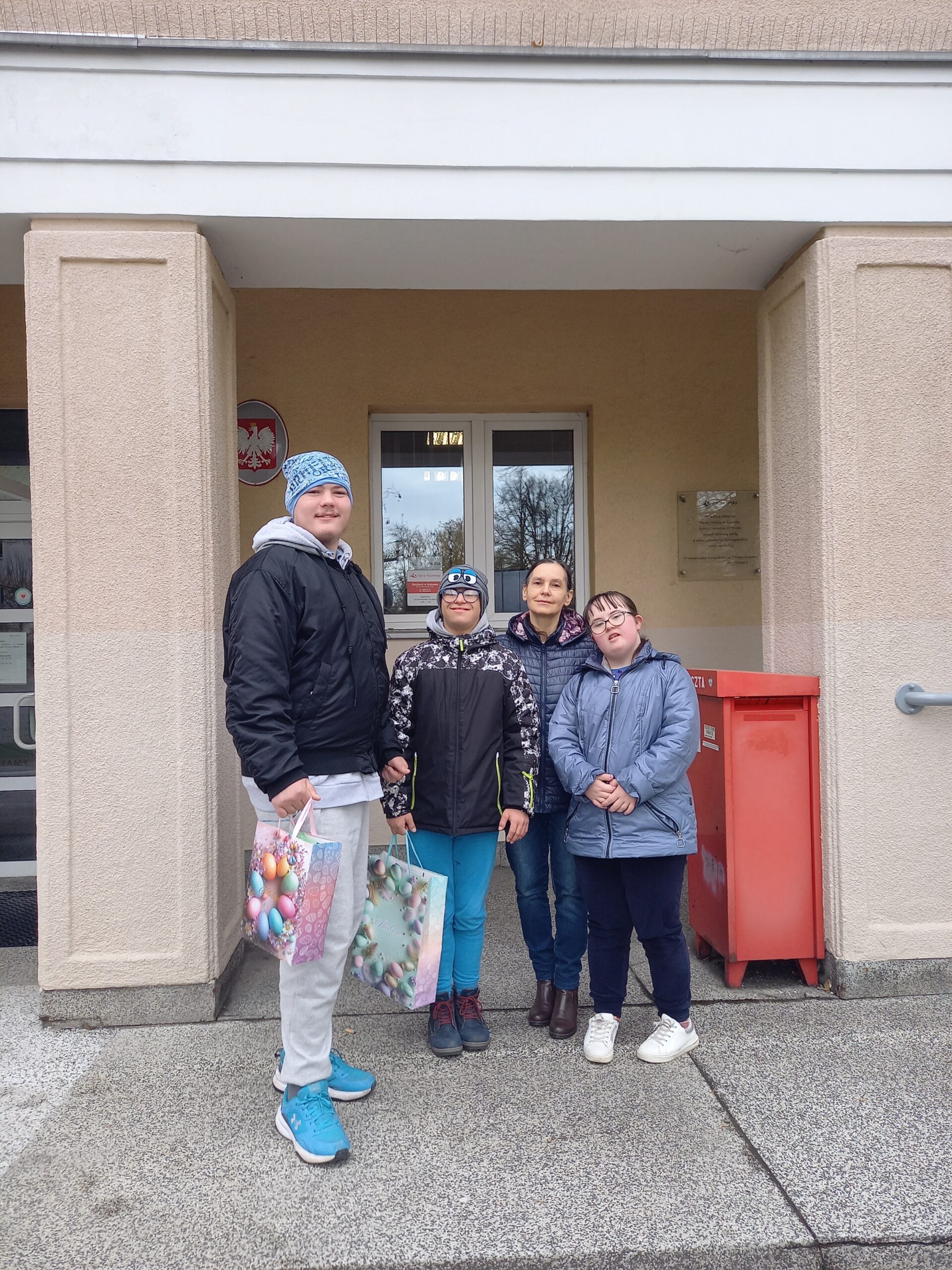 W dniu 1 kwietnia 2026 r., z okazji Świąt Wielkiej Nocy, uczniowie z klas VII b i VIII a wraz ze swoimi opiekunami odwiedzili placówkę pocztową na osiedlu Willowym. Złożyli najserdeczniejsze życzenia wszystkim Pracownikom Urzędu Pocztowego.