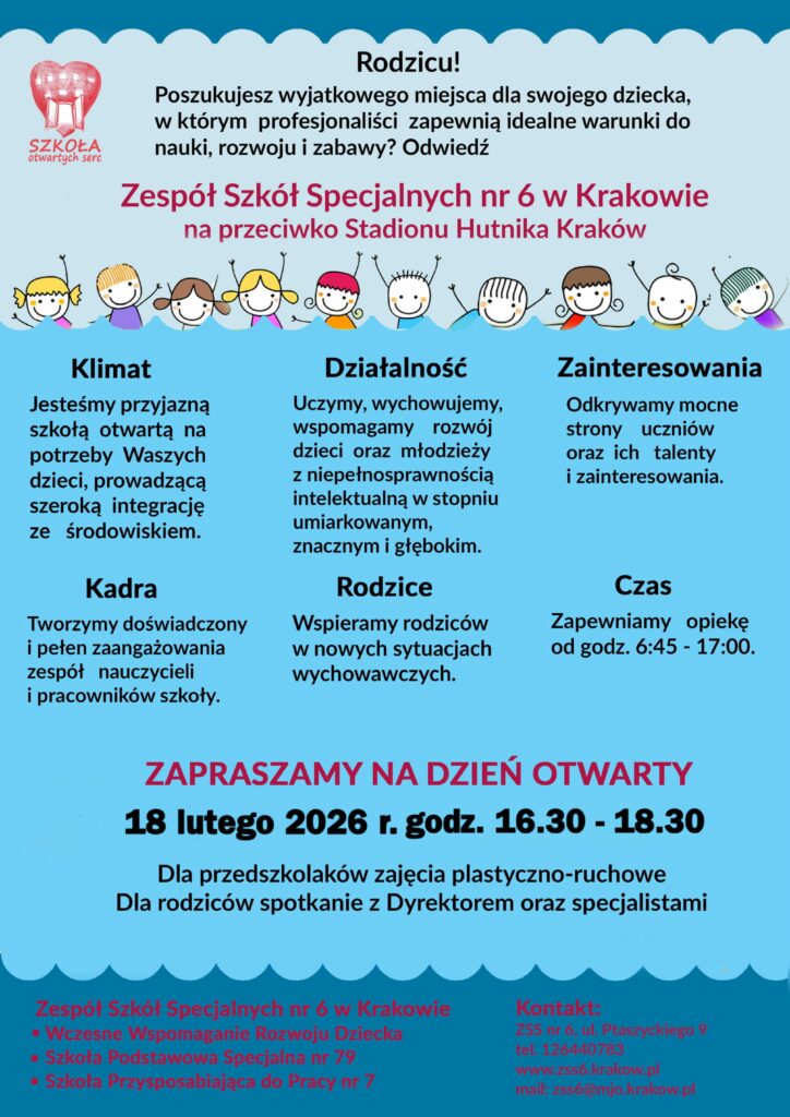 10 lutego 2026 Zapraszamy na Dzień Otwarty Serdecznie zapraszamy Rodziców wraz z dziećmi na Dzień Otwarty naszej szkoły. Szczegóły na plakacie